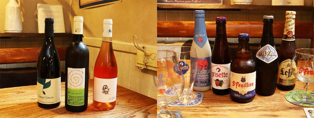 自然派ワインの業者から仕入れているナチュール、種類豊富なベルギービールともに同店の料理にぴったりなので、いろんなマリアージュも楽しめる。