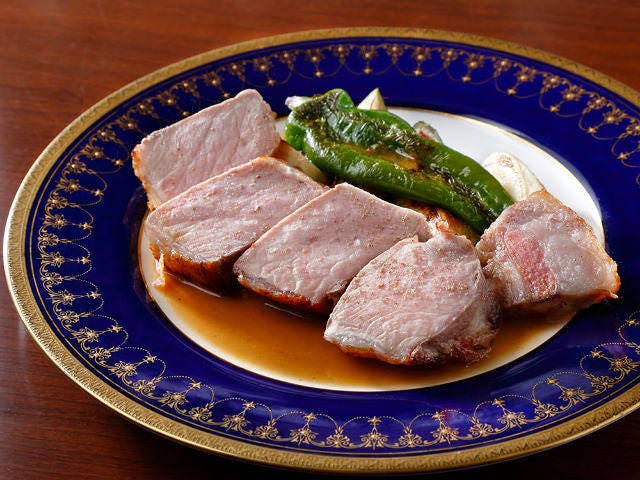 肉料理のおすすめは何といっても「亜麻豚のロースト」(写真上)。復興支援のために岩手県に滞在中、地元にお金が落ちるようサポートしたいと考えて以来、食材を通して地元の生産者を応援しているのだ。